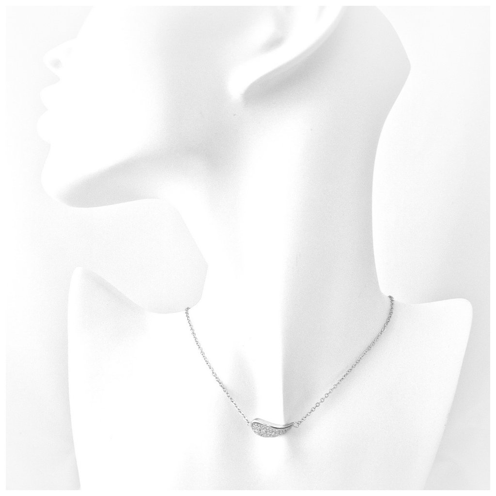 Dámsky strieborný náhrdelník ,,krídlo", motív krídla symbolizuje slobodu, ochranu a nádej. Krídlo je zdobené kamienkami. Rozmer ozdoby je cca 20x5mm. Dĺžka náhrdelníku je 42+3cm. Má povrchovú úpravu rodium.