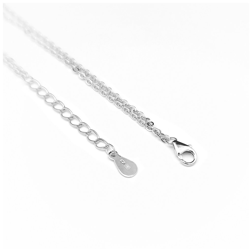 Dvojitý strieborný náhrdelník. Na jednej retiazke je prívesok - jemný krížik s rozmerom 12x5mm a na druhej - je kamienok s priemerom 4mm. 45+3mm. Má povrchovú úpravu rodium.
