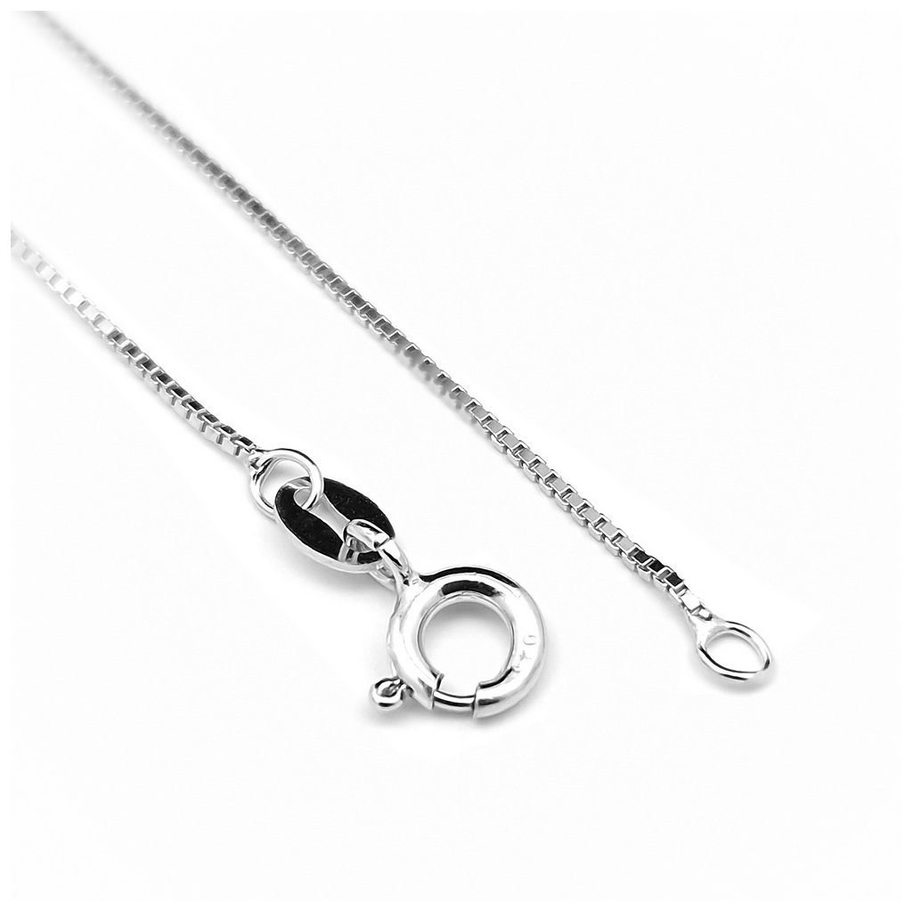 Strieborná retiazka vzor BOX. Šírka retiazky je 1,00 mm. Jedná sa o jemnú retiazku, vhodnú na zavesenie prívesku. Povrchová úprava: ródium. Zapínanie je na perový krúžok.
