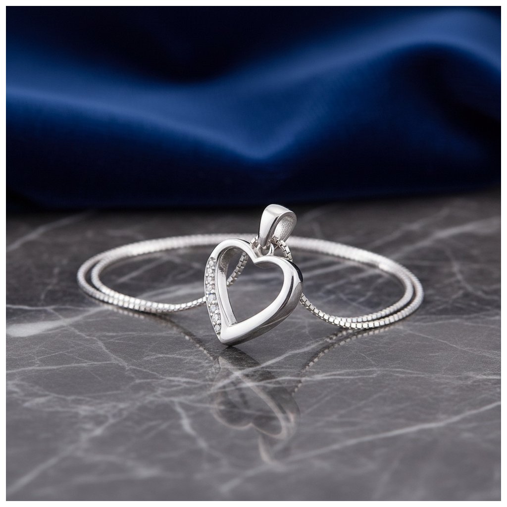 Kamienkový strieborný prívesok ,,srdiečko" s bielymi zirkónmi. Rozmer prívesku je 17x15mm. Rozmer závesného uška je 5x4mm. Prívesok má povrchovú úpravu rodium.
