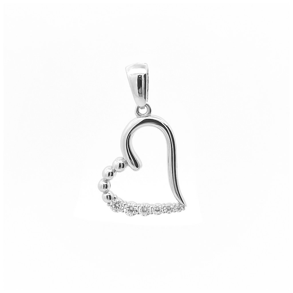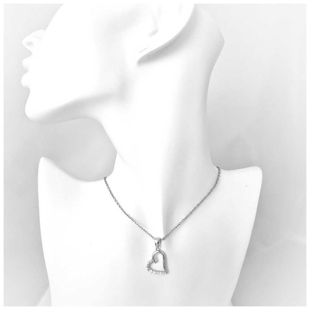 Kamienkový strieborný prívesok ,,srdiečko" s bielymi zirkónmi. Rozmer prívesku je 20x15mm. Rozmer závesného uška je 6x4mm. Prívesok má povrchovú úpravu rodium.