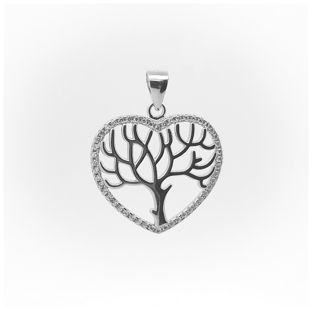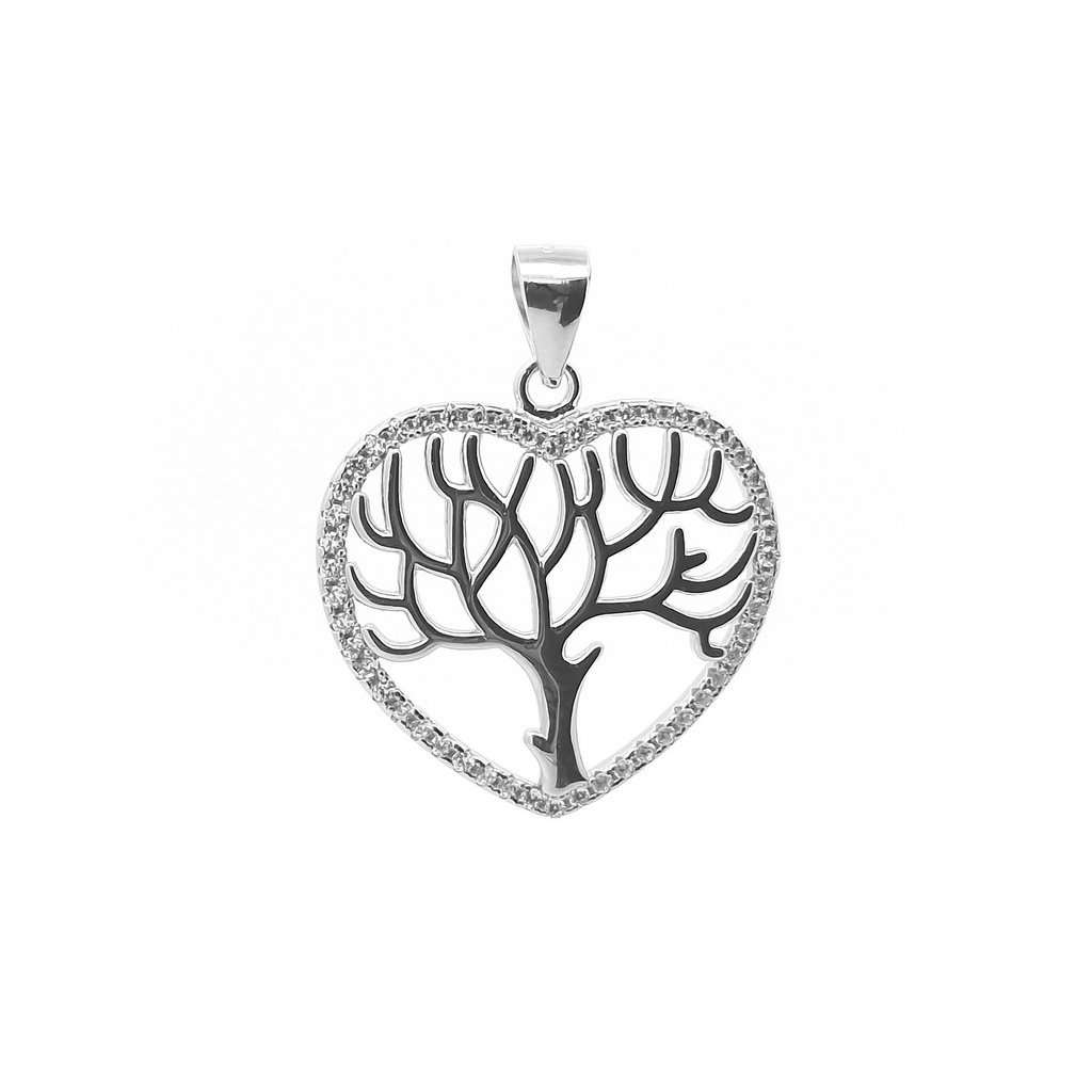 Kamienkový strieborný prívesok ,,srdiečko a strom života" s bielymi zirkónmi. Rozmer prívesku je 20x17mm. Rozmer závesného uška je 5x4mm. Prívesok má povrchovú úpravu rodium.