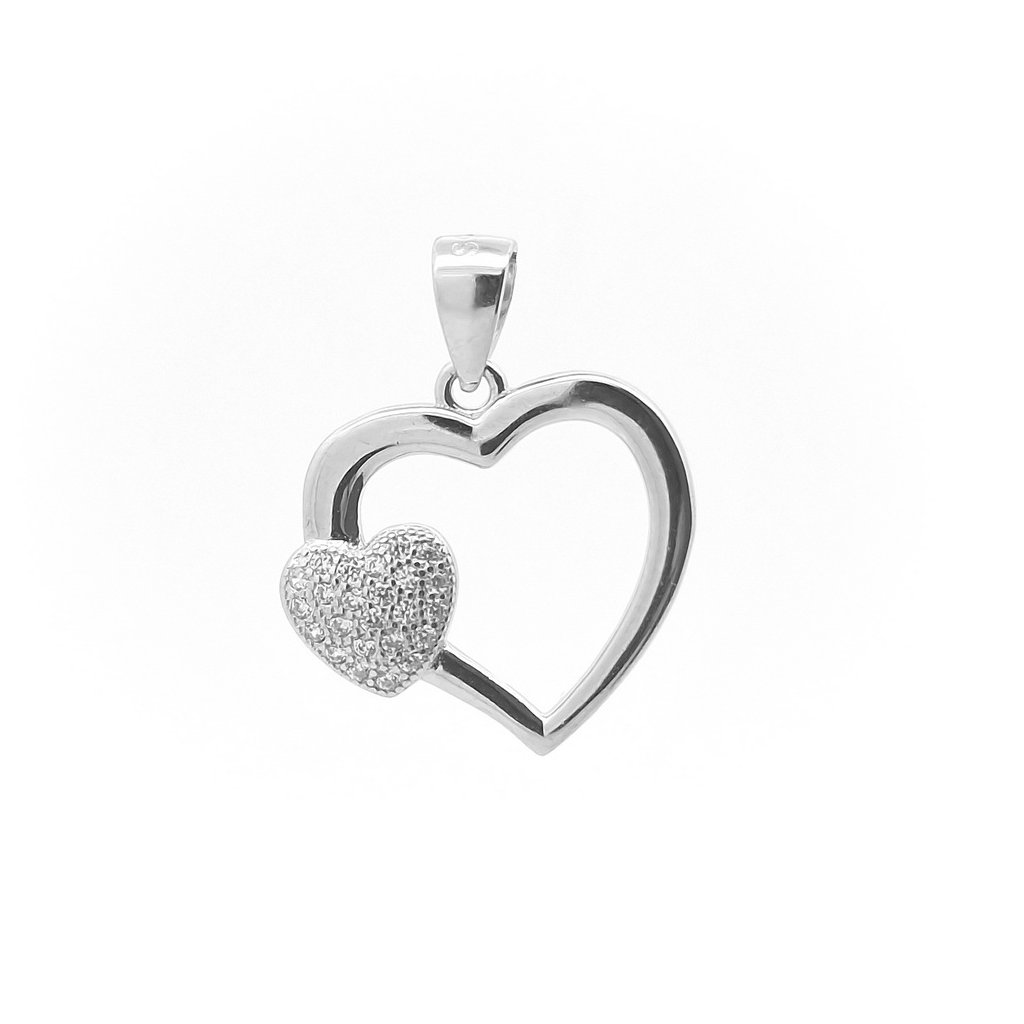 Kamienkový strieborný prívesok ,,srdiečko" s bielymi zirkónmi. Rozmer prívesku je 15x15mm. Rozmer závesného uška je 5x4mm. Prívesok má povrchovú úpravu rodium.
