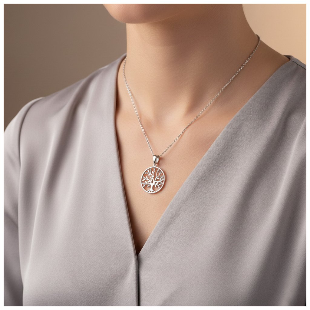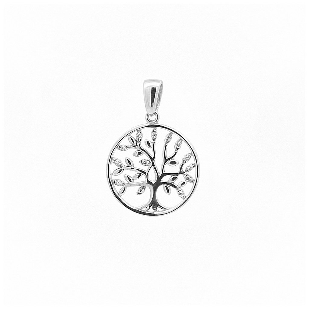 Kamienkový strieborný prívesok ,,strom života" s bielymi zirkónmi. Priemer prívesku je 20mm. Rozmer závesného uška je 5x4mm. Prívesok má povrchovú úpravu rodium.