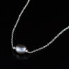 Dámsky oceľový náhrdelník. Na jemnej retiazke je navlečená fialová perla. Zapínanie na karabínku. Veľkosť perly 1*0,8 cm. Dĺžka 45+5cm.