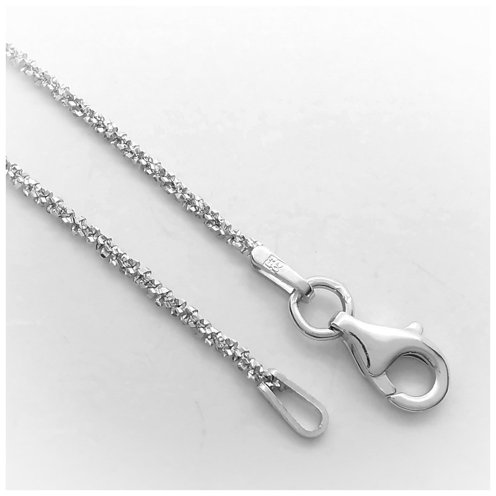 Strieborná retiazka 3D vzor vhodná ako dámska. Šírka retiazky je 1,50mm. Zapínanie je na karabinku. Tento model šperku má povrchovú úpravu rodium.