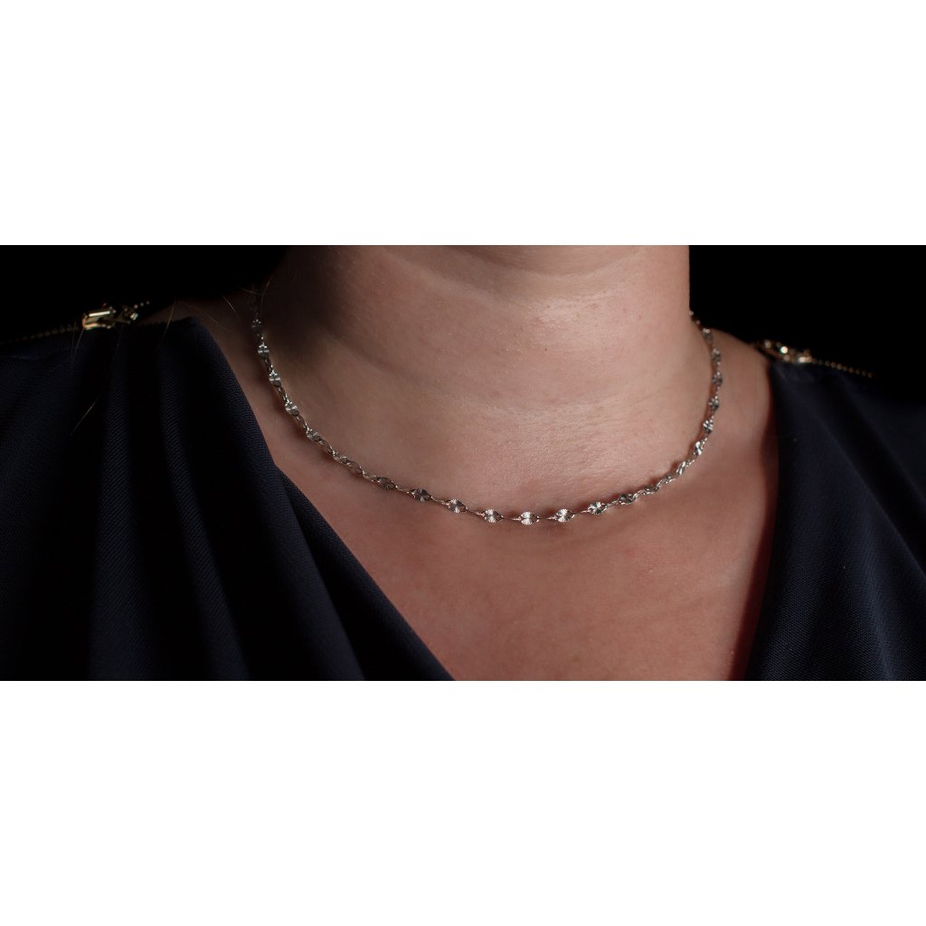 Strieborná retiazka 3D vzor. Šírka je cca 3mm. Jednotlivé očká sú zdobené gravírom. Zapínanie na karabinku. Retiazka má povrchovú úpravu rodium.