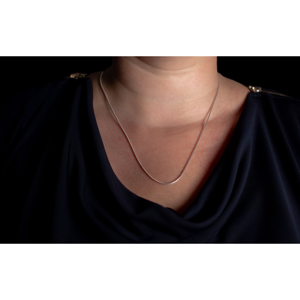 Dámska strieborná retiazka. Vzor hadík. Priemer 1,20 mm. Zapínanie je na karabinku.