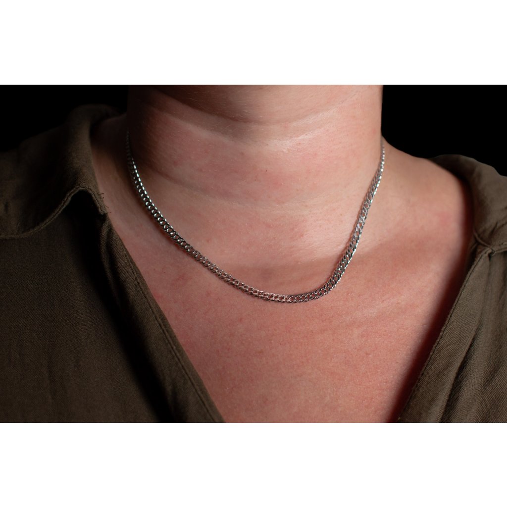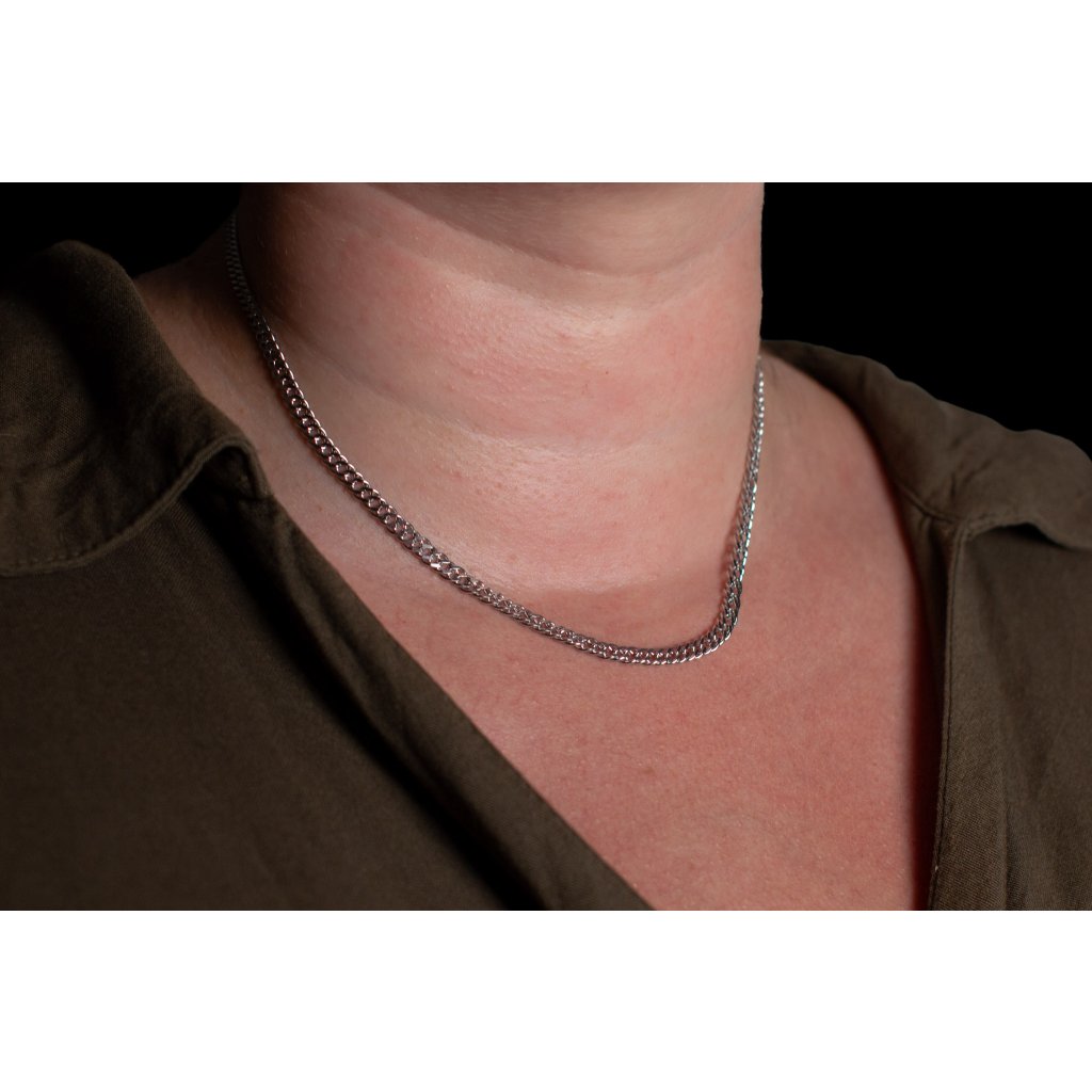 Dámska strieborná retiazka vzor rombo. Zložená je z prepletených očiek. Šírka je 4mm. Zapínanie je na karabinku. Tento model retiazky má povrchovú úpravu rodium.