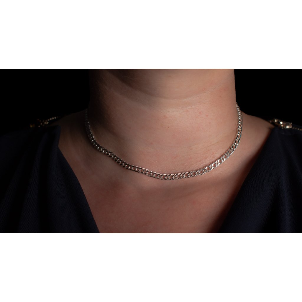 Dámska strieborná retiazka vzor rombo. Zložená je z prepletených očiek. Šírka je 4,50mm. Zapínanie je na karabinku.