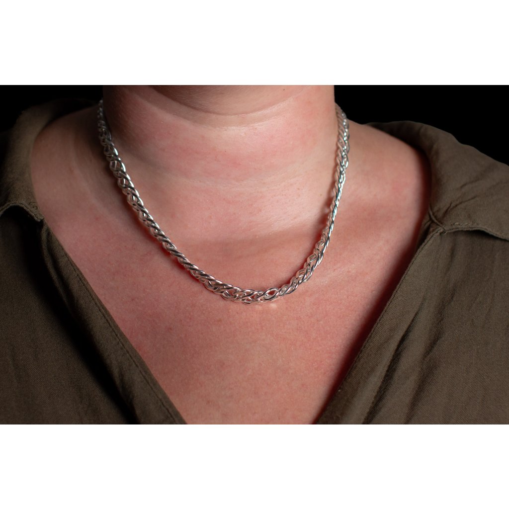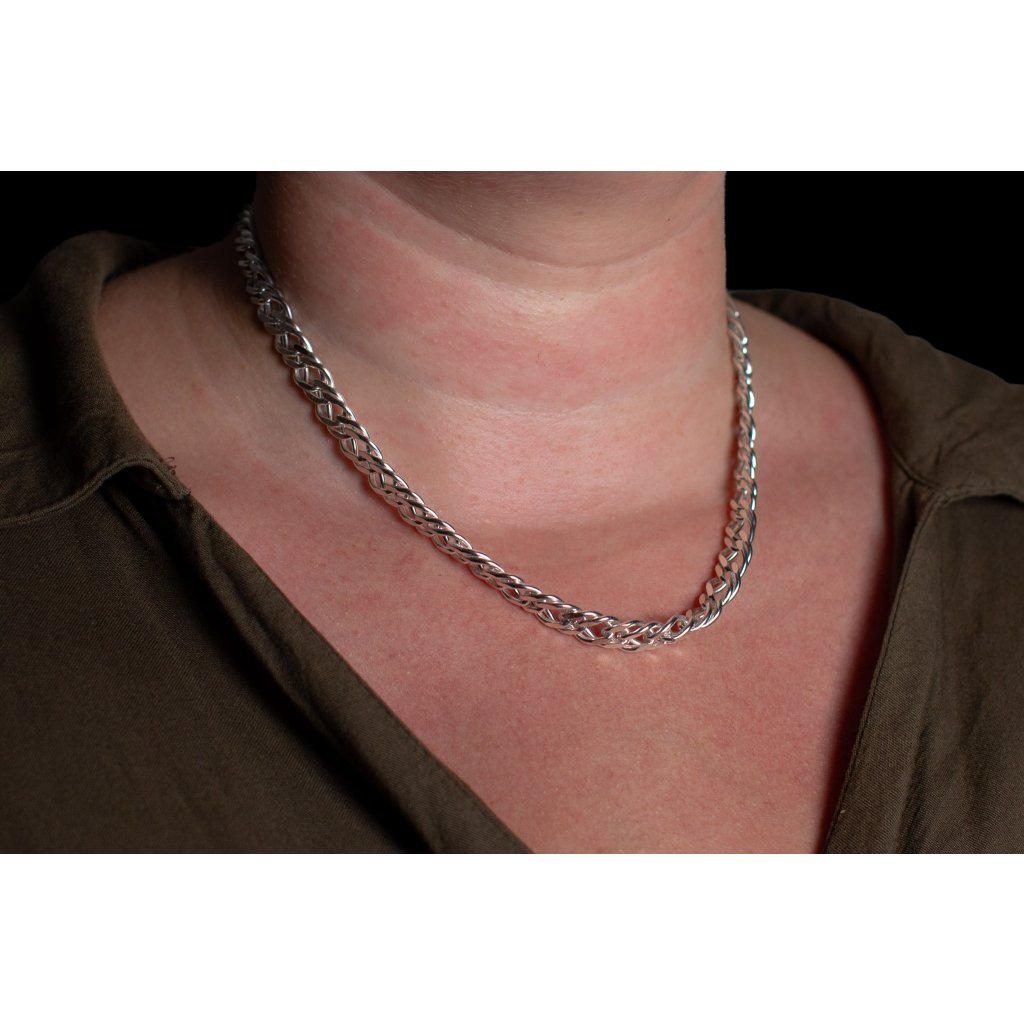 Hrubšia strieborná retiazka vzor rombo. Zložená je z prepletených očiek. Šírka je 8,00mm. Zapínanie je na karabinku.