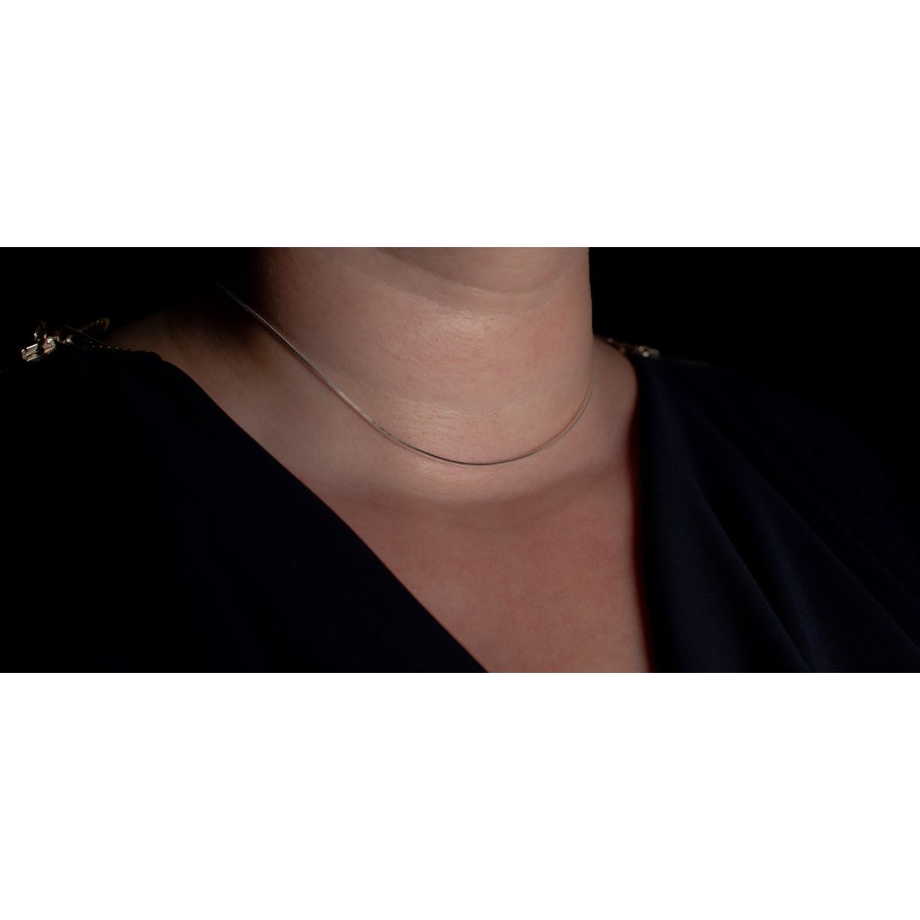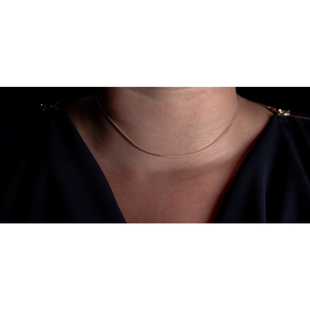 Dámska strieborná retiazka. Vzor hranatý hadík. Priemer 1,50 mm. Zapínanie je na karabinku.