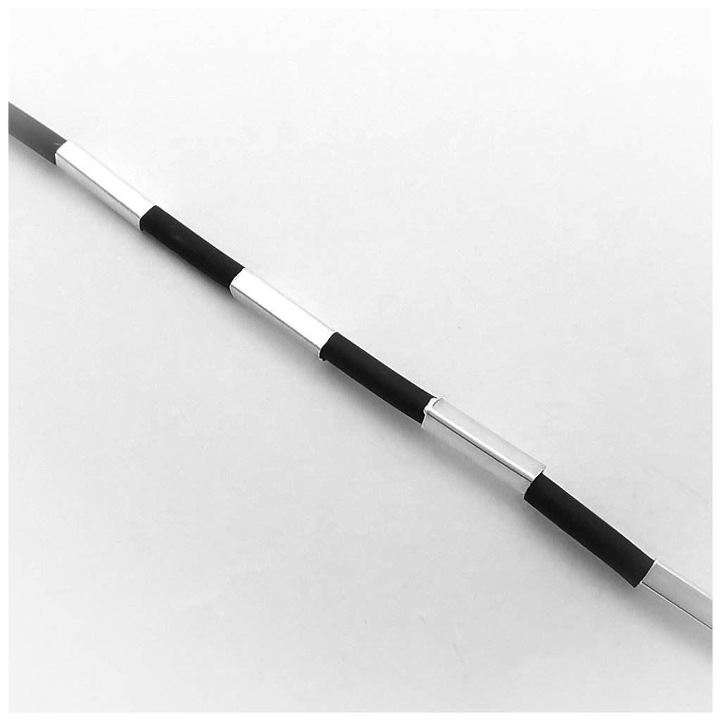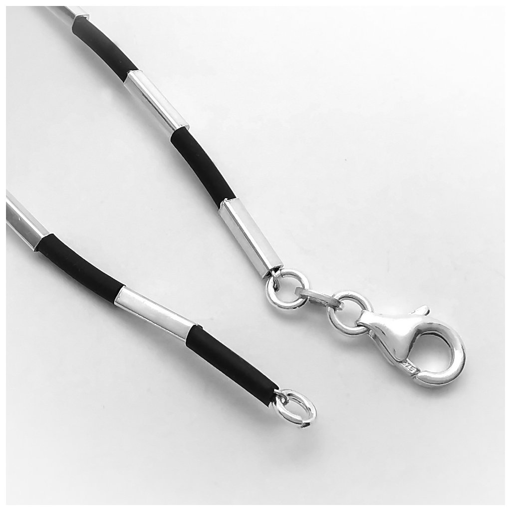 Kaučukovo - strieborná retiazka. Model má hranatý tvar s priemerom 2mm. Zapínanie je na karabinku.