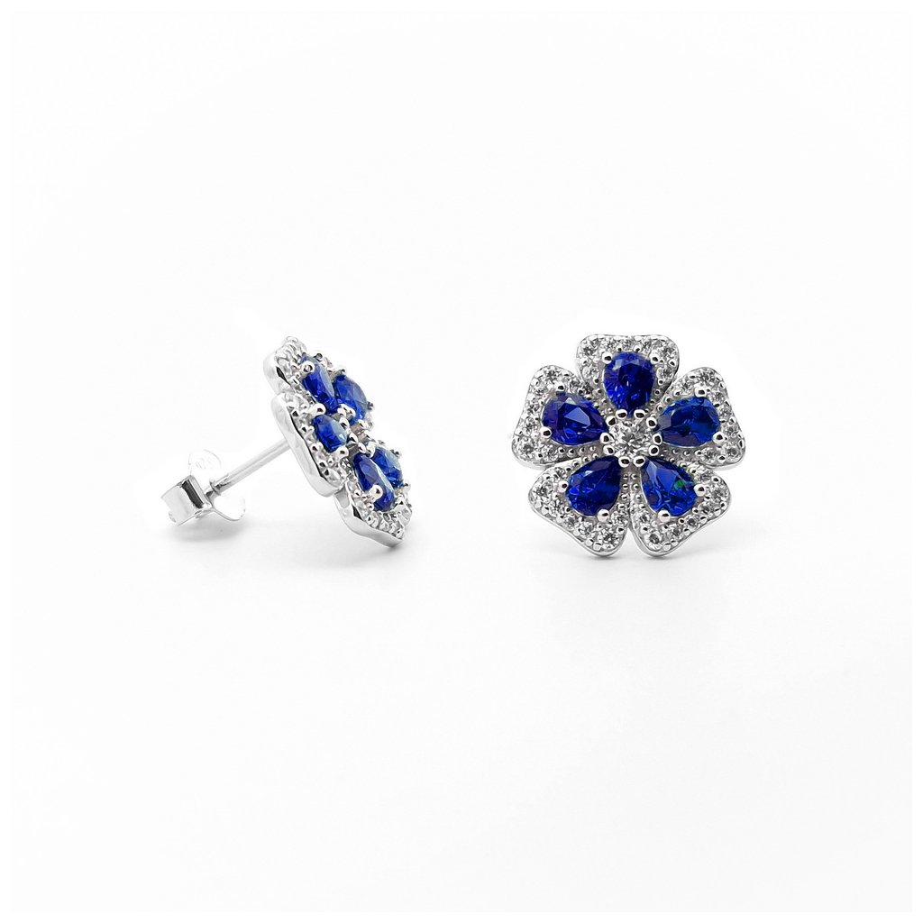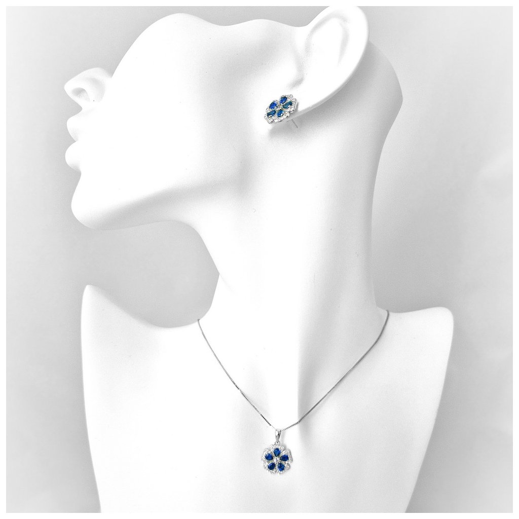 Strieborná súprava so zirkónom tmavo modrej farby v tvare kvietku