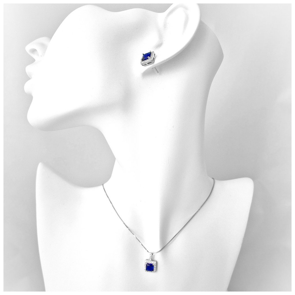 Strieborná súprava so zirkónom tmavo modrej farby v tvare štvorca