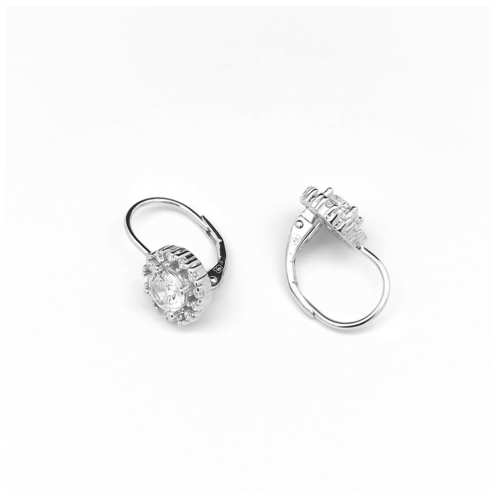 Strieborné kamienkové náušnice, náušnice sú bohato zdobené zirkónmi. Ozdoba má priemer 9mm. Zapínanie je na patent. Náušnice majú povrchovú úpravu rodium.