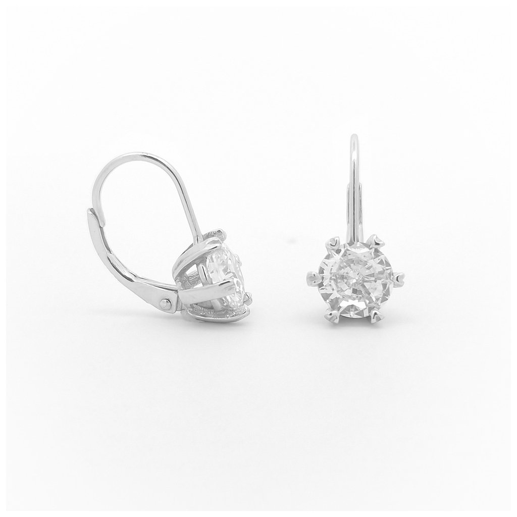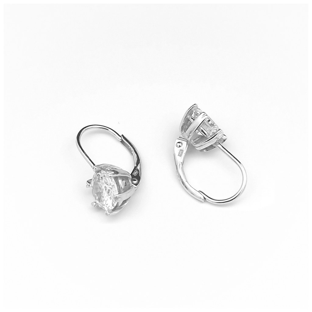 Strieborné kamienkové náušnice, náušnice majú jeden dominantný kameň s priemerom 7mm, osadený v krapniach v tvare srdca. Zapínanie je na patent. Náušnice majú povrchovú úpravu rodium.