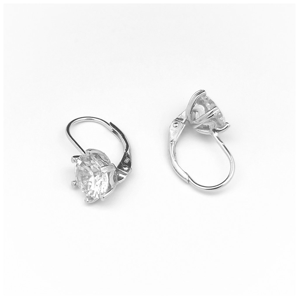 Strieborné kamienkové náušnice, náušnice majú jeden dominantný kameň s priemerom 7mm, osadený v krapniach v tvare srdca.  Zapínanie je na patent. Náušnice majú povrchovú úpravu rodium.