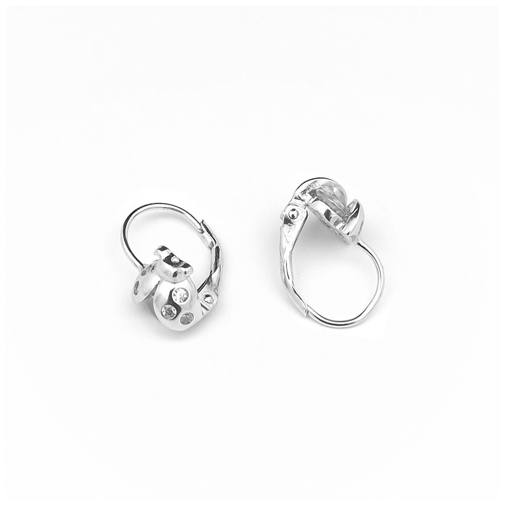 Strieborné náušnice zdobené zirkónmi. Ozdoba je v tvare lienky s rozmerom 7x7mm. Zapínanie je na patent. Náušnice majú povrchovú úpravu rodium.