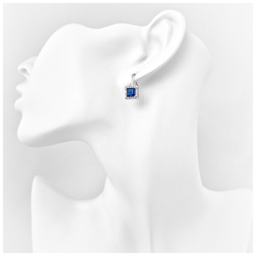 Strieborné kamienkové náušnice ,,tmavo modré ", náušnice majú centrálny kameň tmavo modrej farby, rozmer kameňa je 5x5mm, osadený je v krapniach, dookola je zdobený bielymi zirkónmi. Zapínanie je na patent. Náušnice majú povrchovú úpravu rodium.