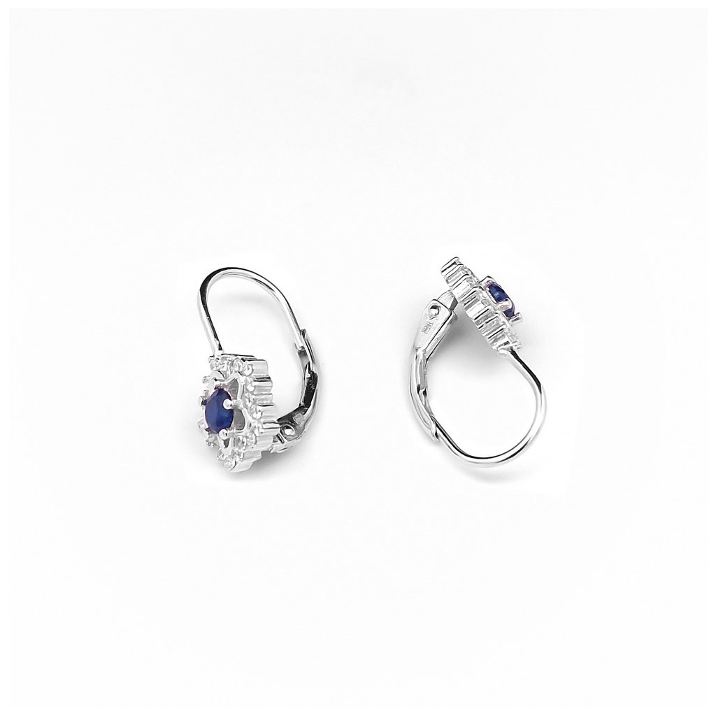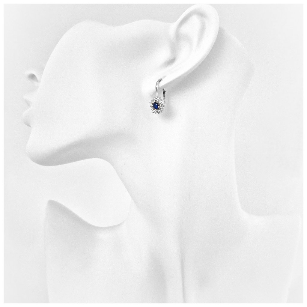 Strieborné kamienkové náušnice ,,tmavo modré hviezdy", náušnice majú centrálny kameň tmavo modrej farby o priemere 3mm, osadený je v krapniach, po bokoch je zdobený bielymi zirkónmi. Priemer ozdoby, ktorá má tvar hviezdy je 8mm. Zapínanie je na patent. Náušnice majú povrchovú úpravu rodium.
