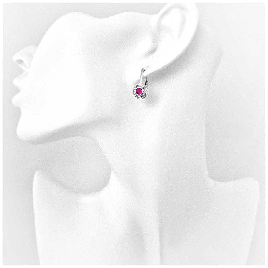 Strieborné kamienkové náušnice - tmavšie ružové. Centrálny kameň je po bokoch mierne zdobený zirkónmi. Priemer ozdoby je 8mm. Zapínanie je na patent. Náušnice majú povrchovú úpravu rodium.