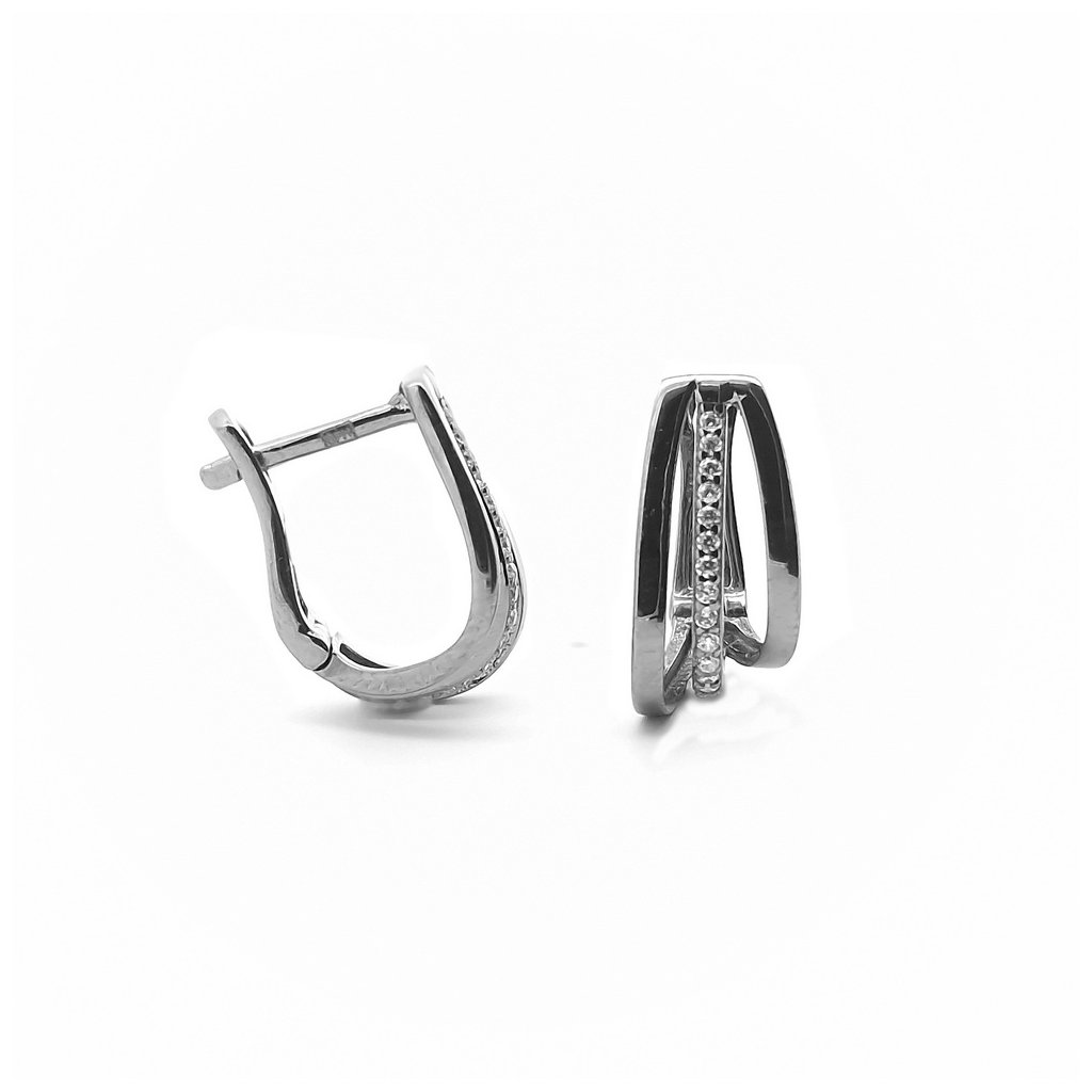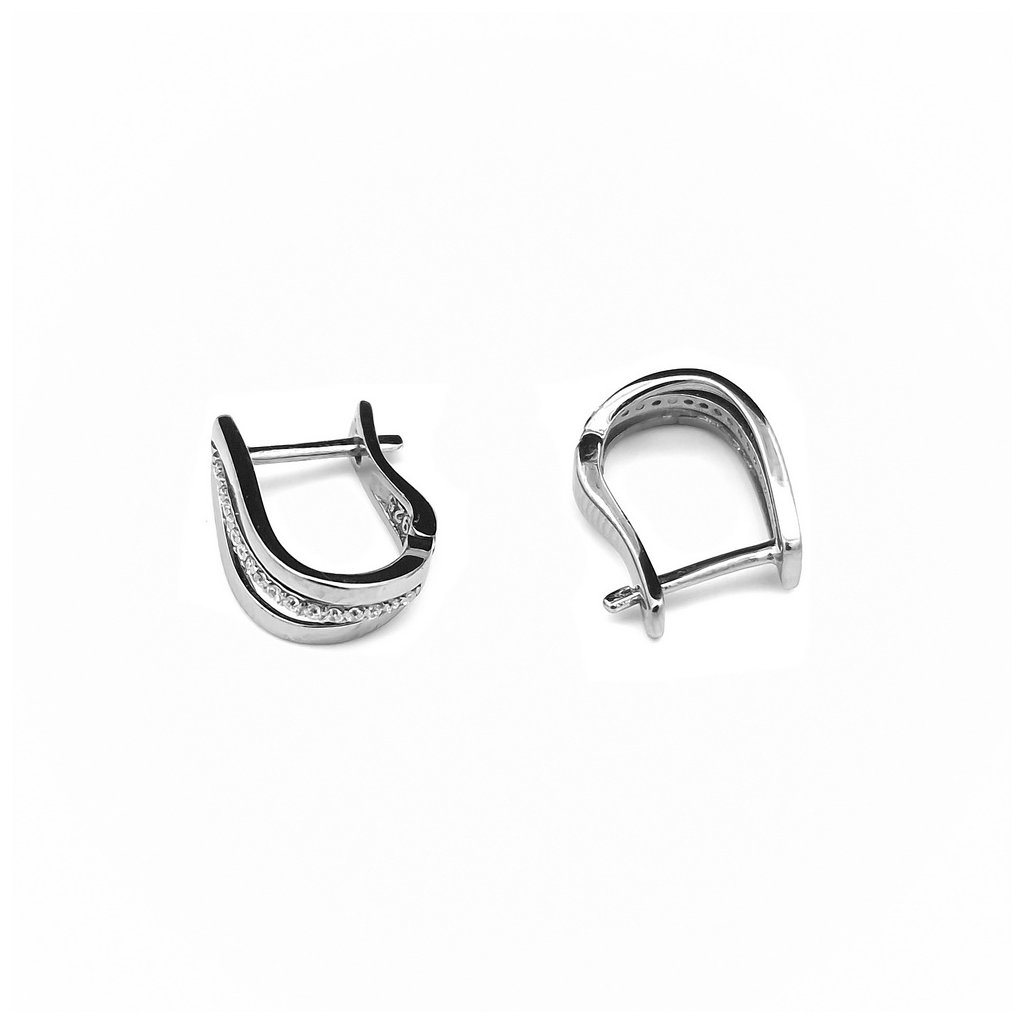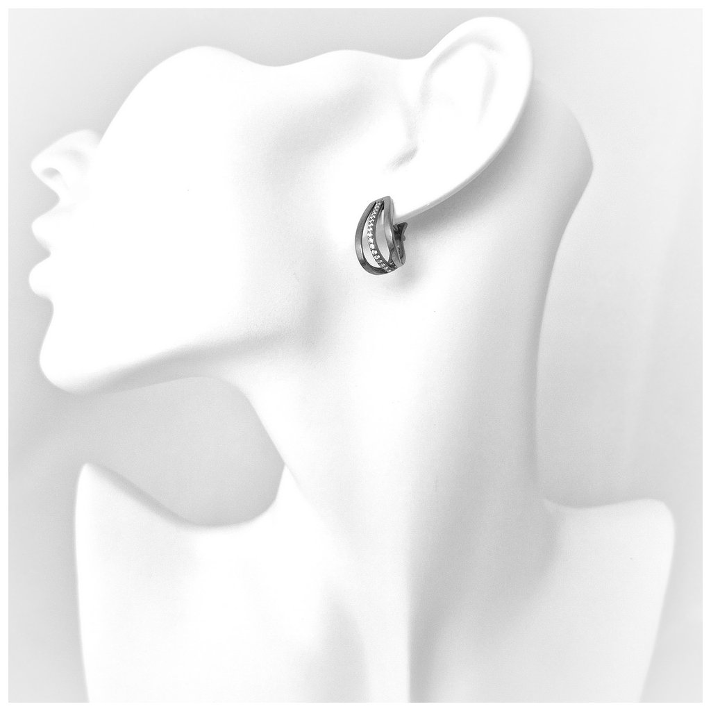 Dámske strieborné náušnice s kamienkom a tmavším povrchom, náušnice sú v tvare oválu a z prednej strany sú zdobené bielymi kamienkami. Zapínanie je do seba na háčik. Rozmer náušníc je 16x7mm. Náušnice majú tmavšiu povrchovú úpravu - patinu.