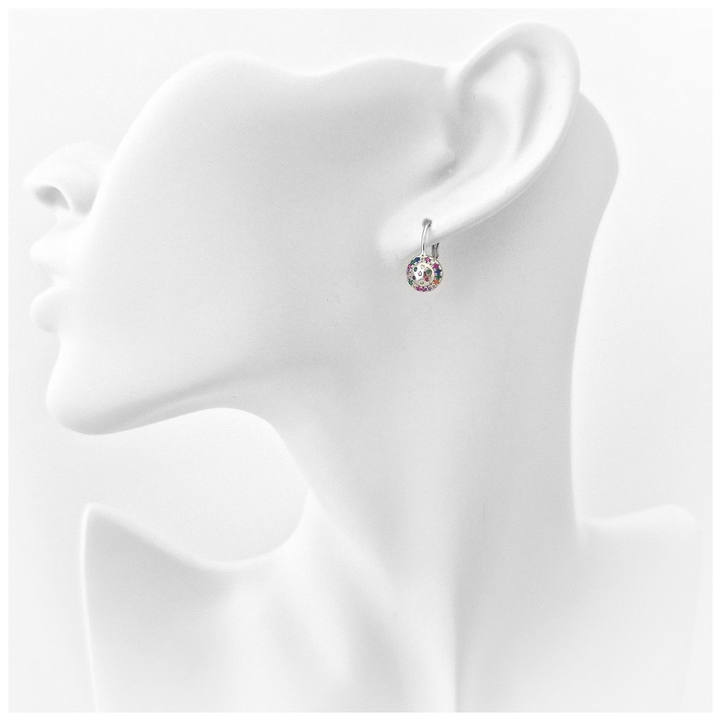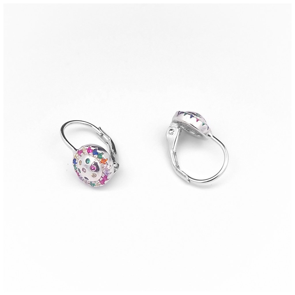 Strieborné náušnice ,,farebný mix". Zapínanie majú na patent. Sú bohato zdobené farebnými kamienkami. Priemer ozdoby je cca 7mm. Zapínanie je na patent.
