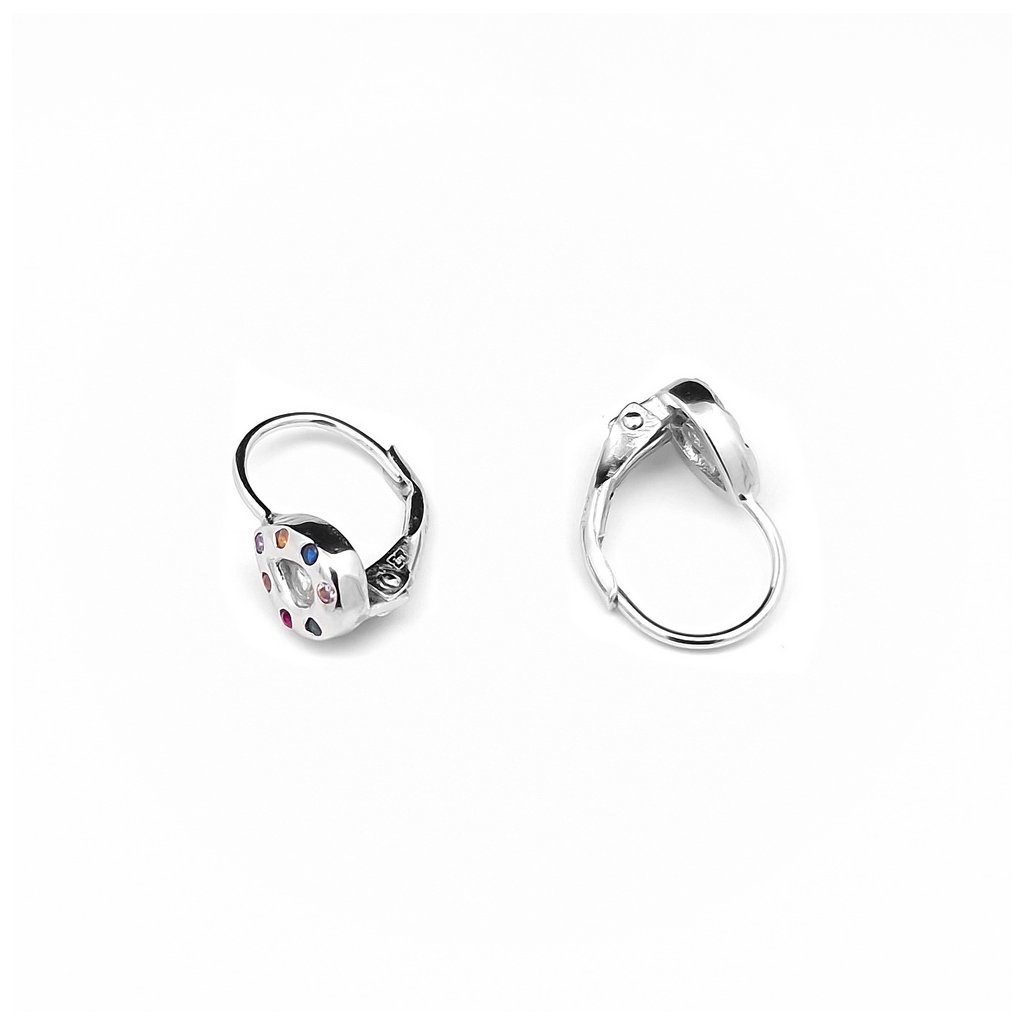 Strieborné náušnice ,,farebný mix". Tieto náušnice sú vhodné aj pre mladé slečny, zapínanie majú na patent. Sú bohato zdobené farebnými kamienkami. Ozdoba je v tvare slzy s rozmerom cca 7x5mm.