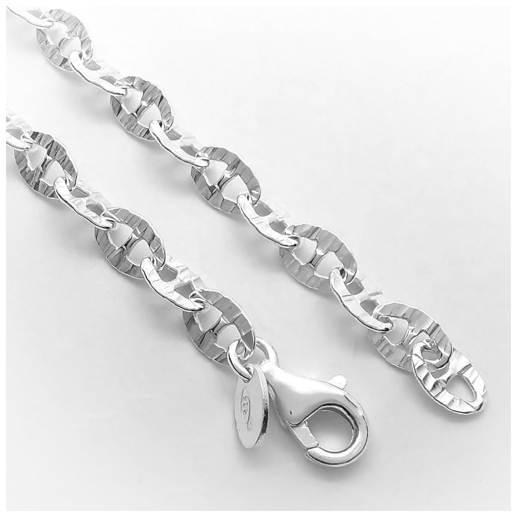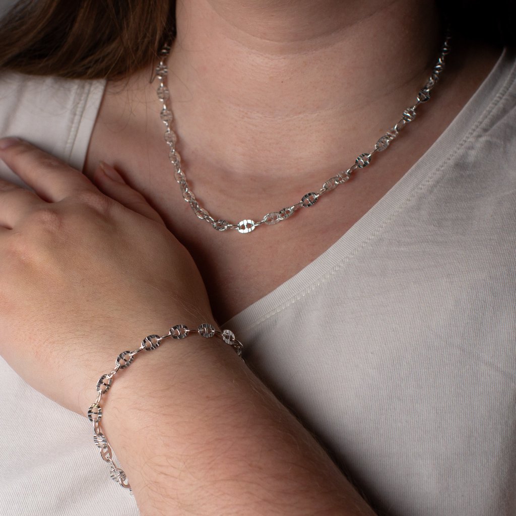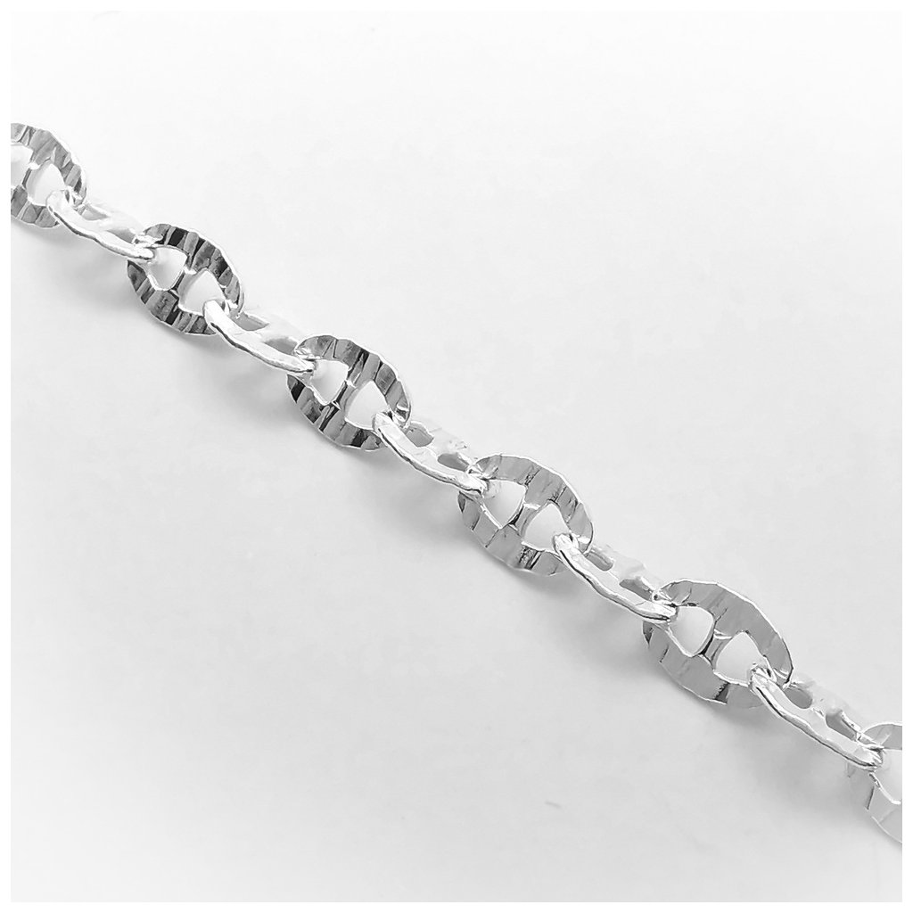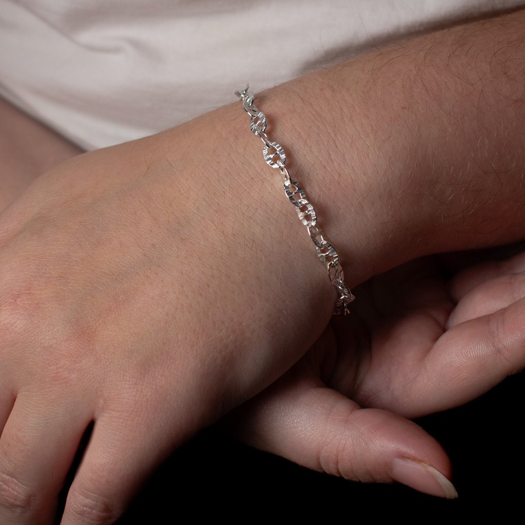 Strieborný 3D náramok, jednotlivé očká sú gravírované. Náramok je vhodný ako pre dámy tak aj pre pánov. Šírka je 5mm. Zapínanie na karabinku.