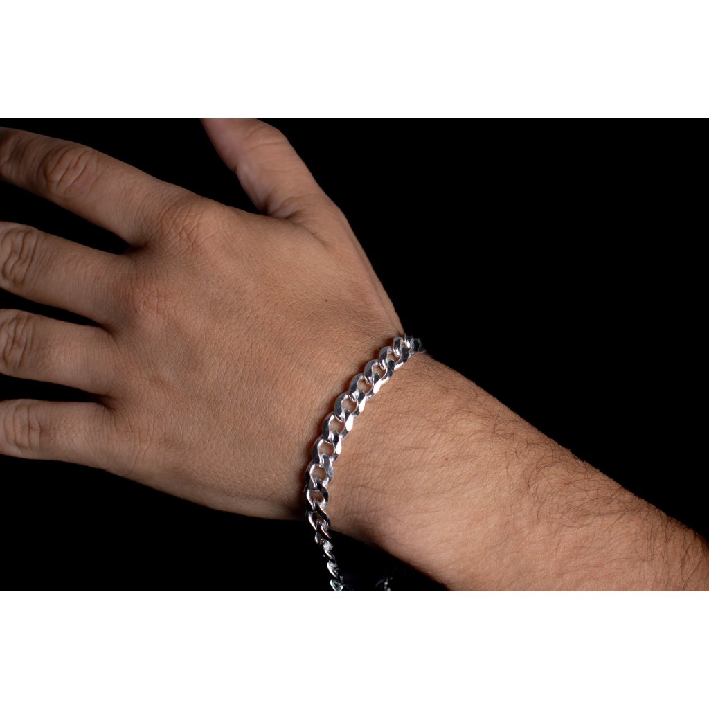 Strieborný náramok vhodný pre každého. Typ pancier. Šírka cca 8,00 mm. Zapínanie je na karabinku.