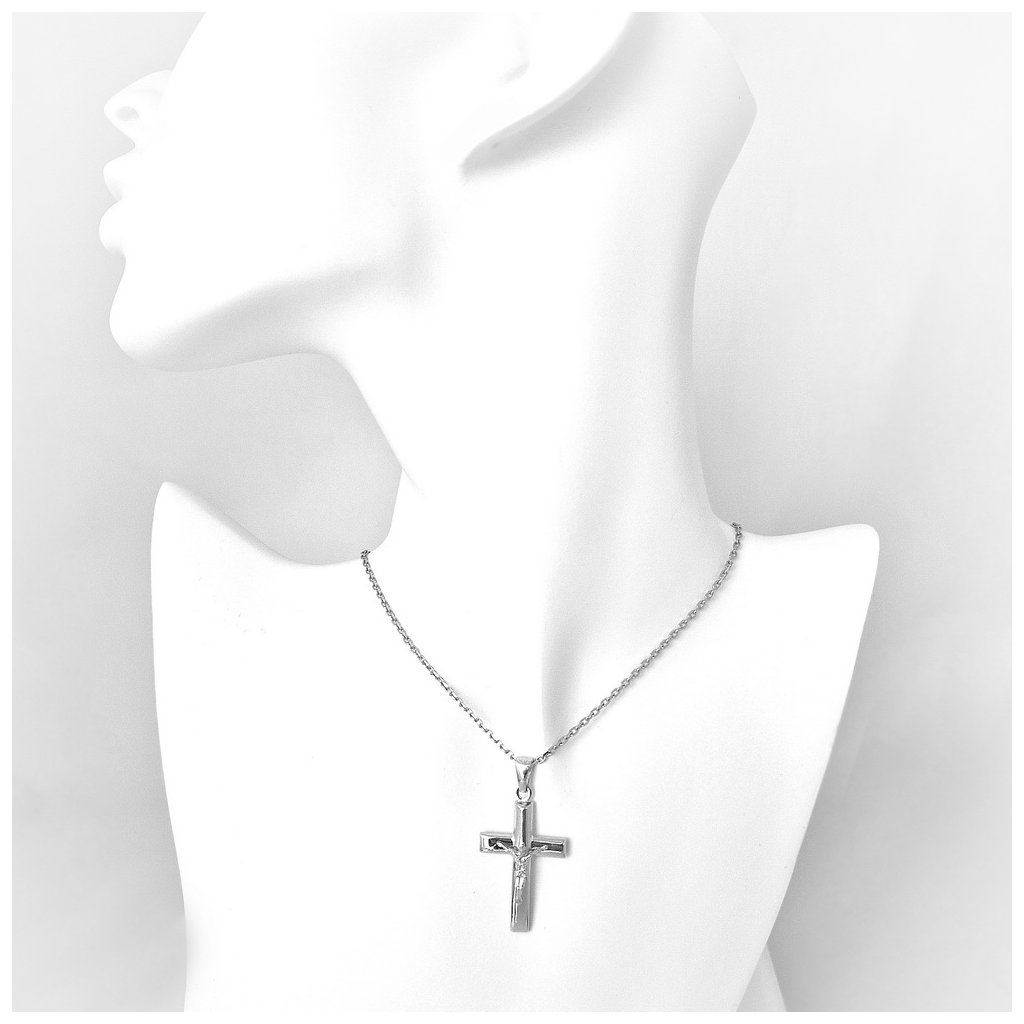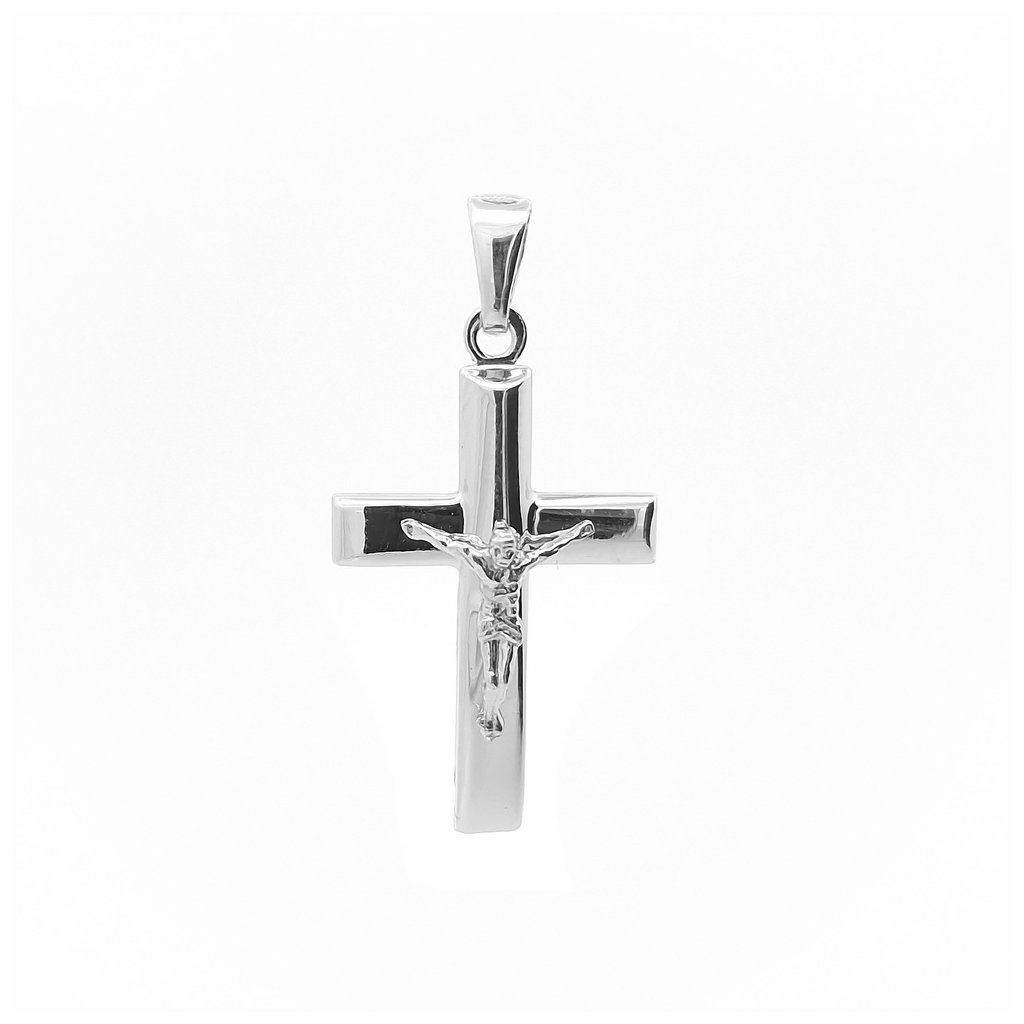 Strieborný prívesok ,,krížik s Kristom". Rozmer prívesku je 20x30x5mm. Rozmer závesného uška je 7x4mm. Prívesok má povrchovú úpravu rodium.