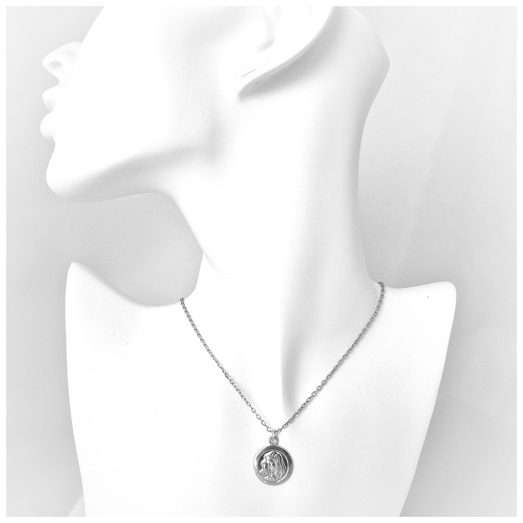 Strieborný prívesok ,medailón s PANNOU MÁRIOU. Priemer prívesku je 16mm. Priemer závesného uška je 3mm. Prívesok má povrchovú úpravu rodium.