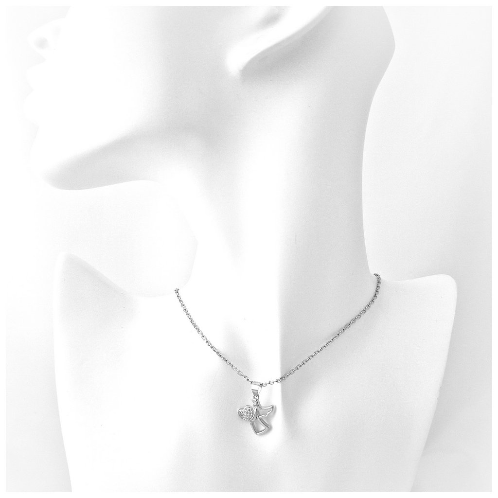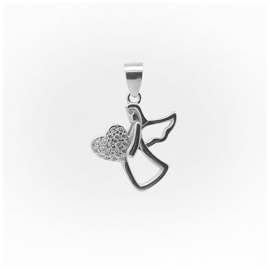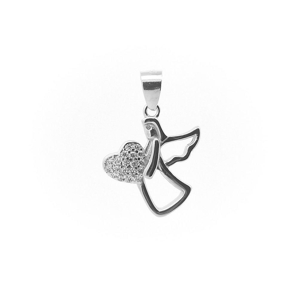 Strieborný prívesok ,,anjel so srdiečkom" s bielymi zirkónmi. Rozmer prívesku je cca 15x15mm. Rozmer závesného uška je 5x4mm. Prívesok má povrchovú úpravu rodium.