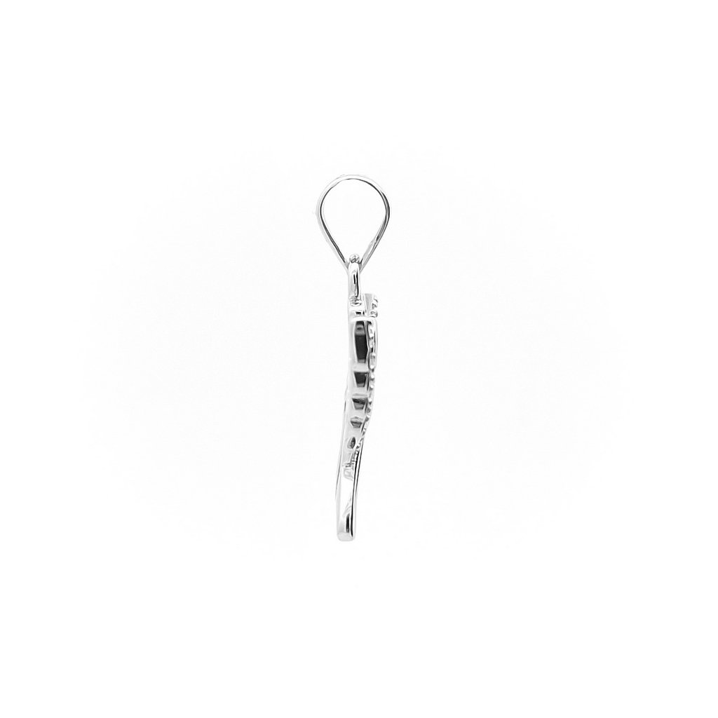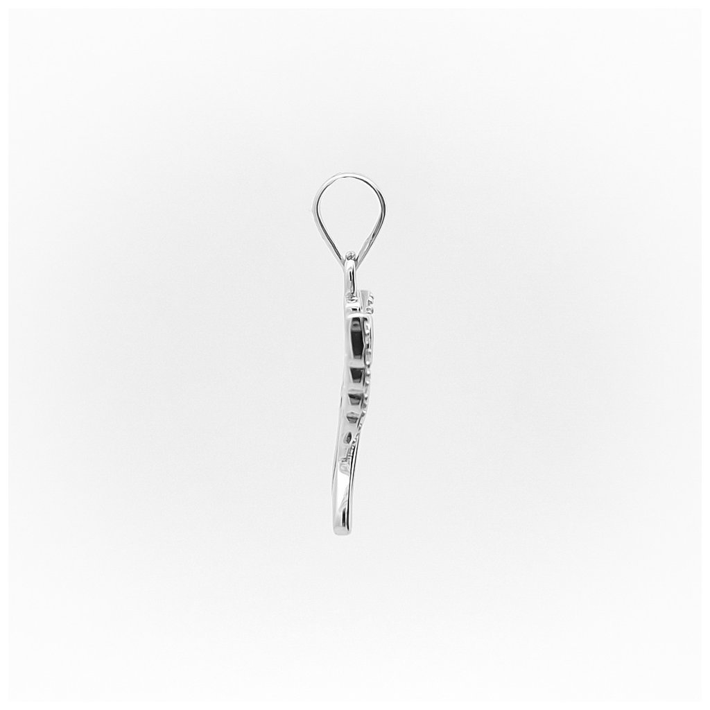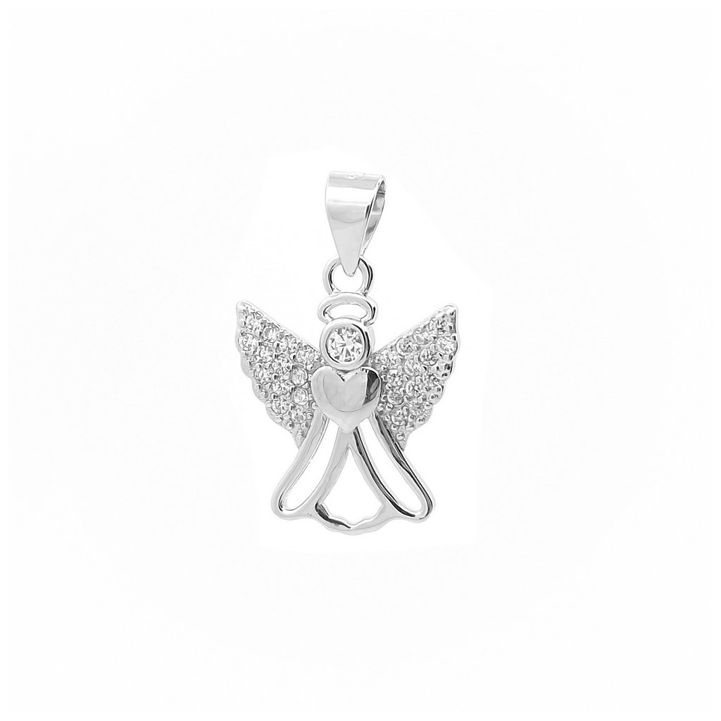 Strieborný prívesok ,,anjel" s bielymi zirkónmi. Rozmer prívesku je cca 15x15mm. Rozmer závesného uška je 5x4mm.