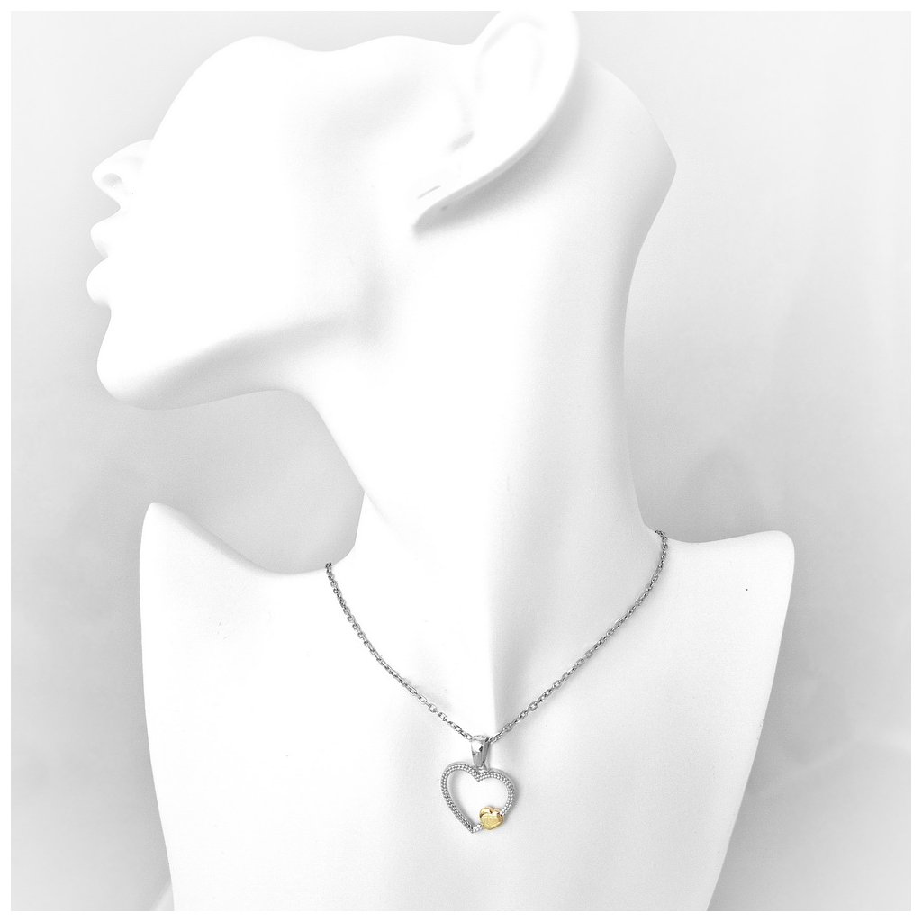 Strieborný prívesok bielo - žlté ,,gravírované srdiečko". Rozmer prívesku je 20x15mm. Rozmer závesného uška je 6x4mm. Prívesok má povrchovú úpravu rodium.