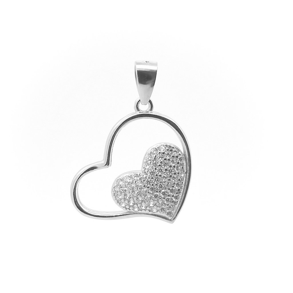 Dámsky strieborný prívesok ,,srdiečko" s bielymi zirkónmi. Rozmer prívesku je 20x15mm. Rozmer závesného uška je 5x4mm. Prívesok má povrchovú úpravu rodium.