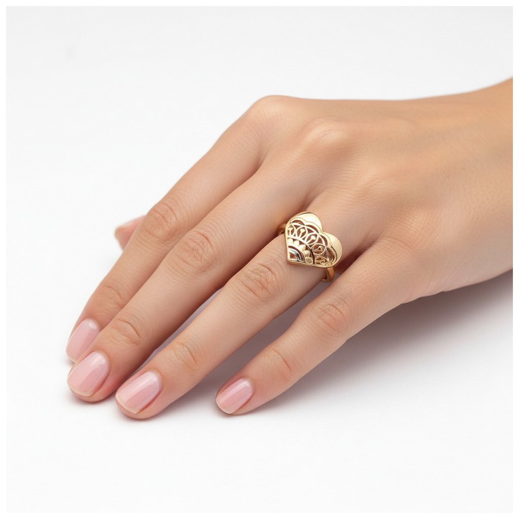 Prsteň zo žltého zlata s ozdobou v tvare srdiečka, ozdoba je perforovaná žlto biela. Rozmer má rozmer cca 10x8mm.